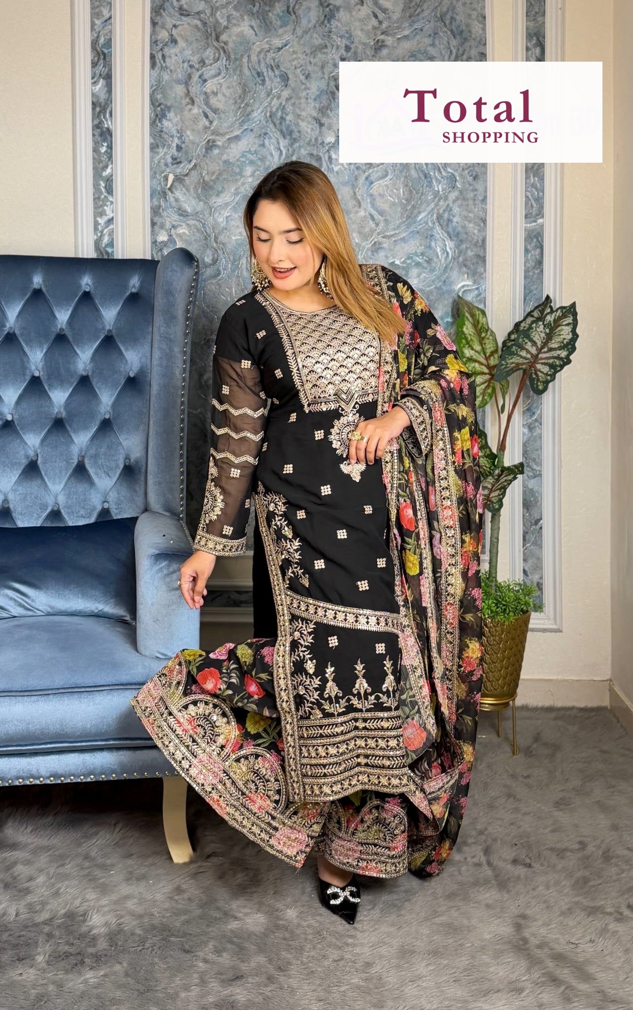 Exclusive Ready Made Party Sharara-[LP-355]-Black