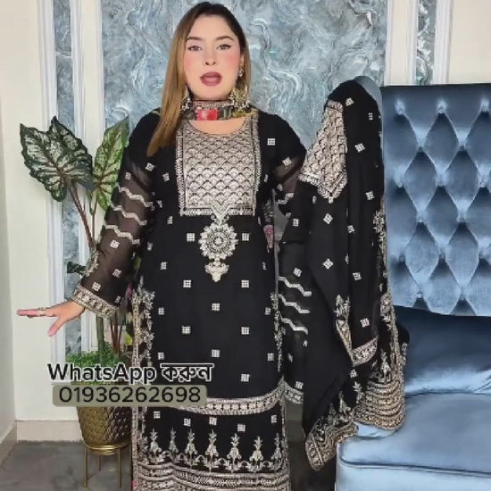 • সম্পূর্ণ রেডি-মেড শারারা সেট (কামিজ, শারারা ও ওড়না)